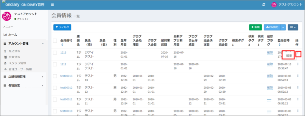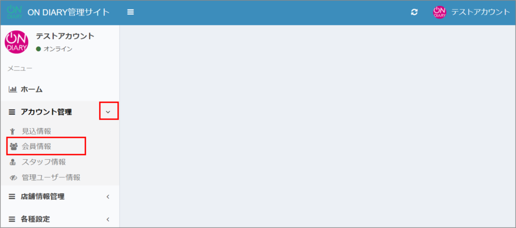 ON DIARY管理サイトにて、会員情報を編集・削除する方法です。