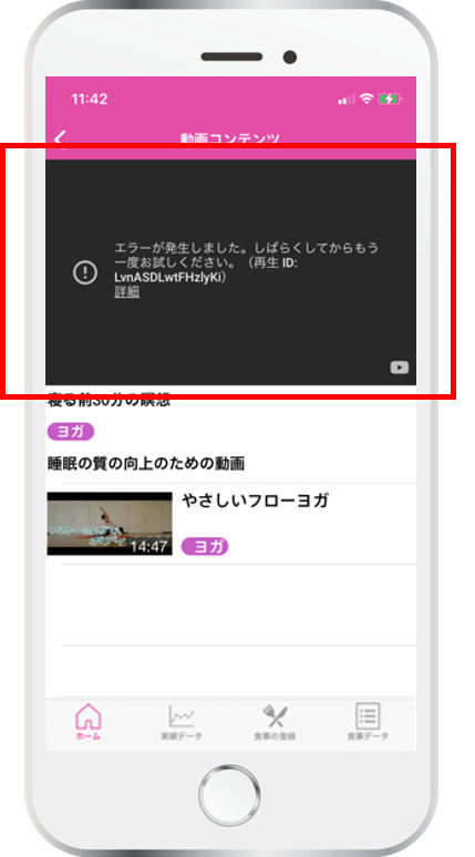 アプリで動画を再生すると「エラーが発生しました」と表示され、動画が再生できない場合の対処です。