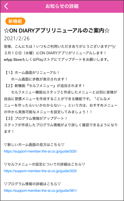 タイトル:☆ON DIARYアプリリニューアルのご案内☆