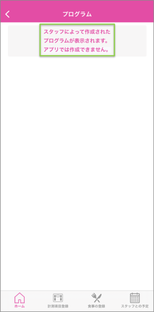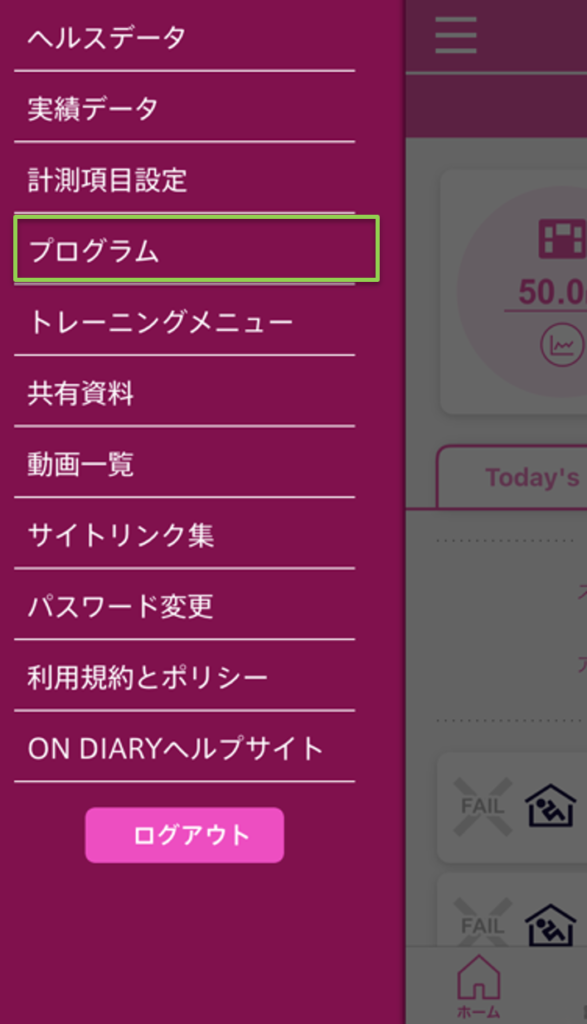 アプリのサイドメニューから【プログラム】を選択するとプログラム情報が表示されます。