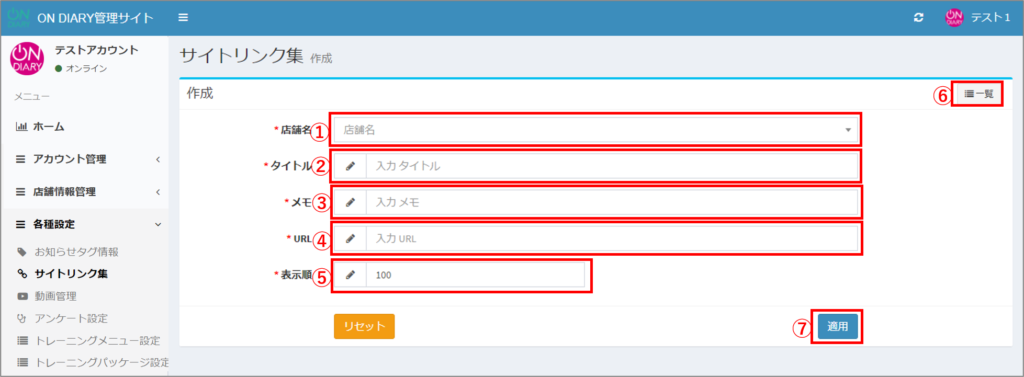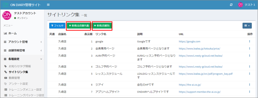 ONDIARY管理サイトで、会員アプリのサイトリンク集のコンテンツを追加する方法です。