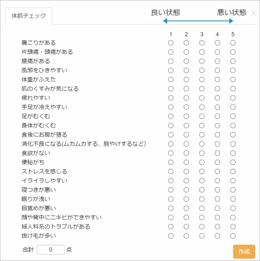『体調チェック』 数値化しにくい身体の状態を5段階評価