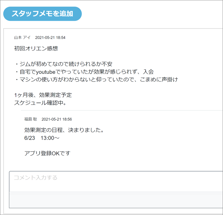 『スタッフメモ』 スタッフ同士のチャットとしても活用可能