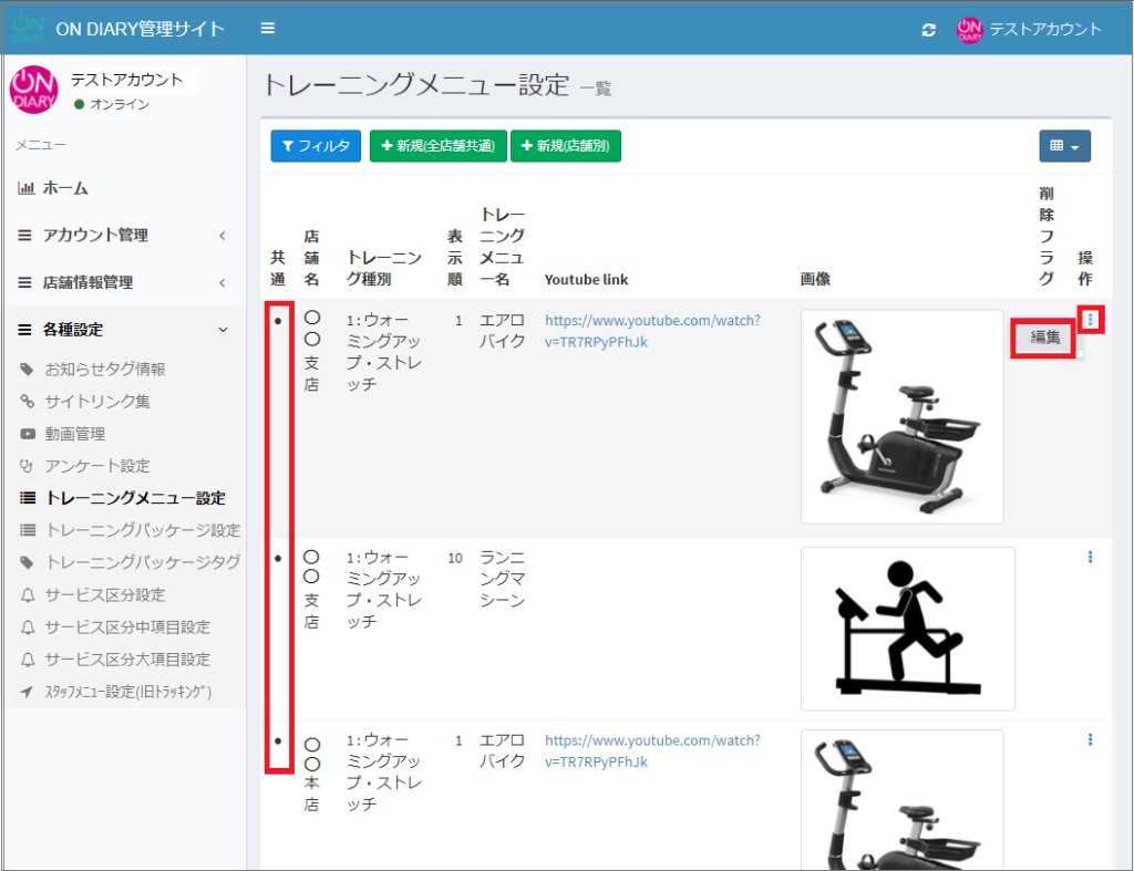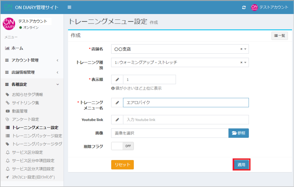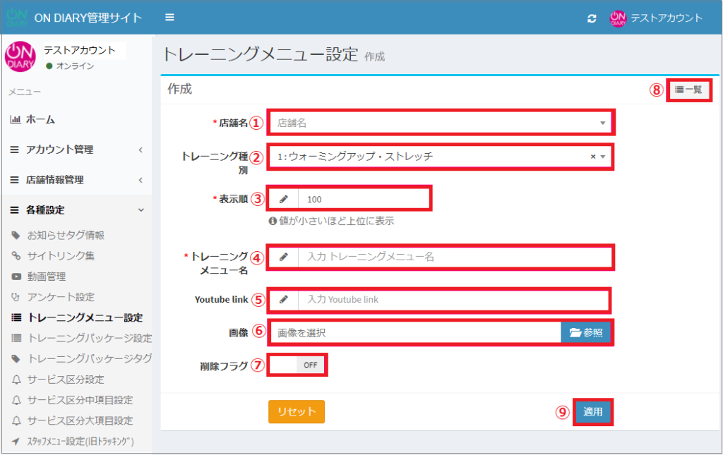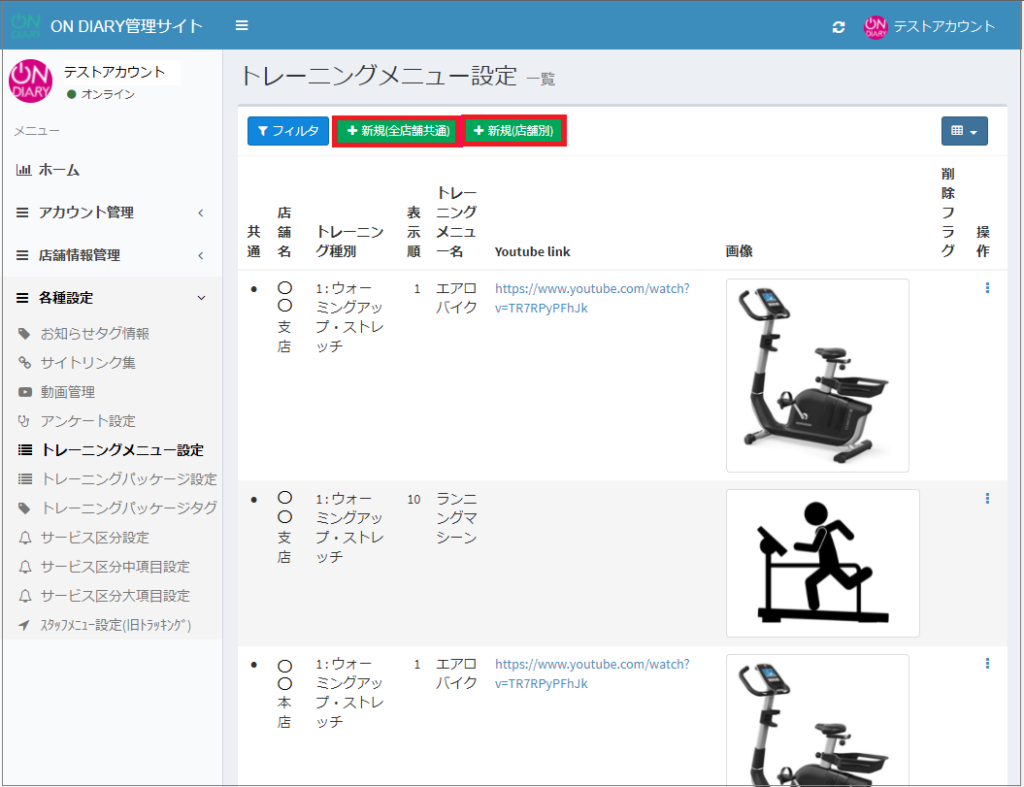 トレーニングメニュー(マスターメニュー)をON DIARY管理サイトで作成・編集する方法です。