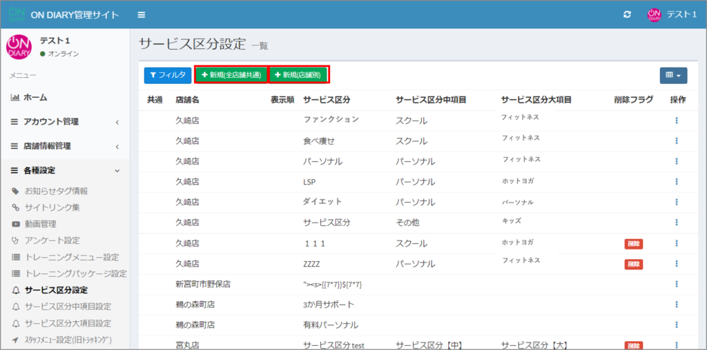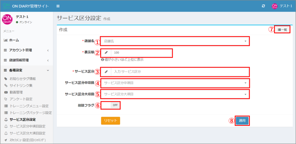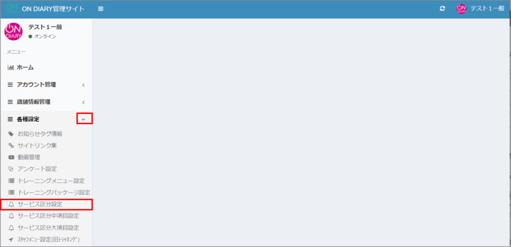 ON DIARY管理サイトで、サービス区分を追加する方法です。