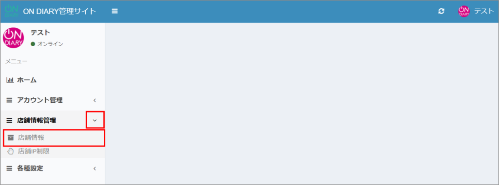 ON DIARY管理サイトで、店舗情報を確認する方法です。