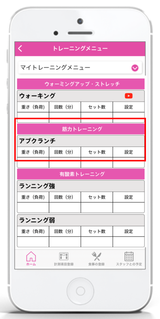 ※ON DIARY管理サイトで「アプクランチ」というトレーニングメニューは削除済
