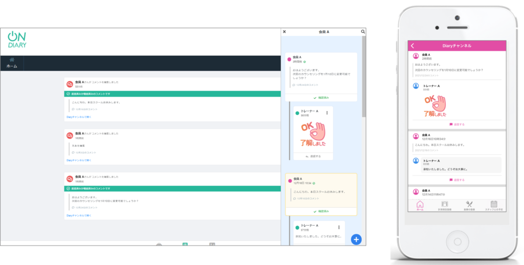 会員とのコメントや画像等の送受信を行うDiaryチャンネルのスタッフサイト側のマニュアルです。