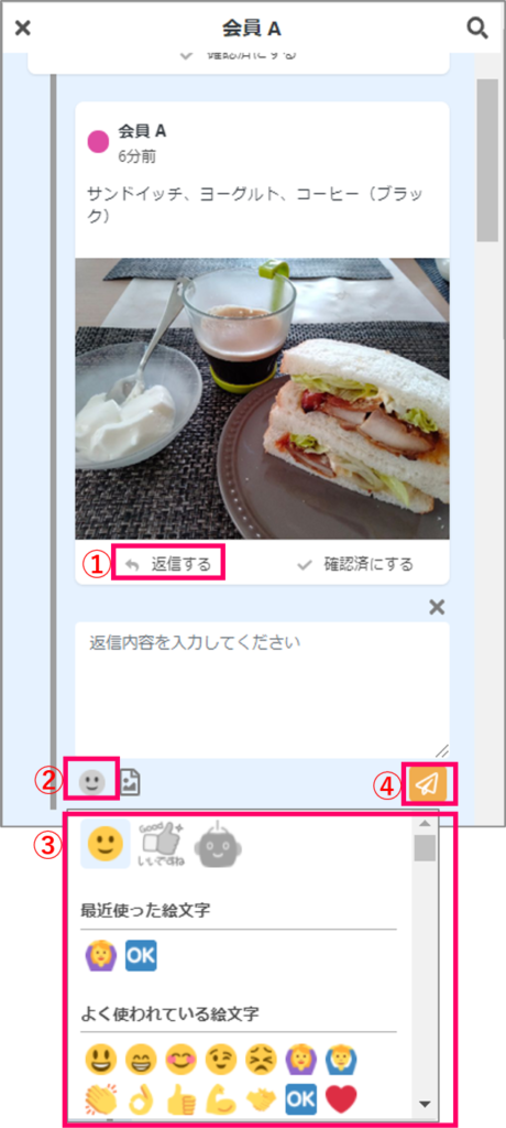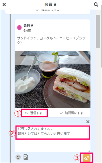 ※会員コメントへの返信と同様に、スタンプや画像も送ることができます。