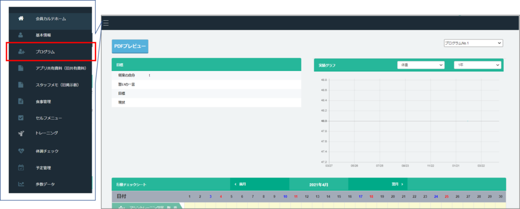 カウンセリング時に作成したプログラム情報が反映されます。