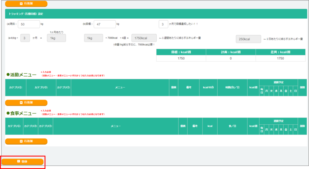 ※「将来の目標」と「スタッフメニュー(活動メニュー、食事メニュー)」は必須項目となっています。