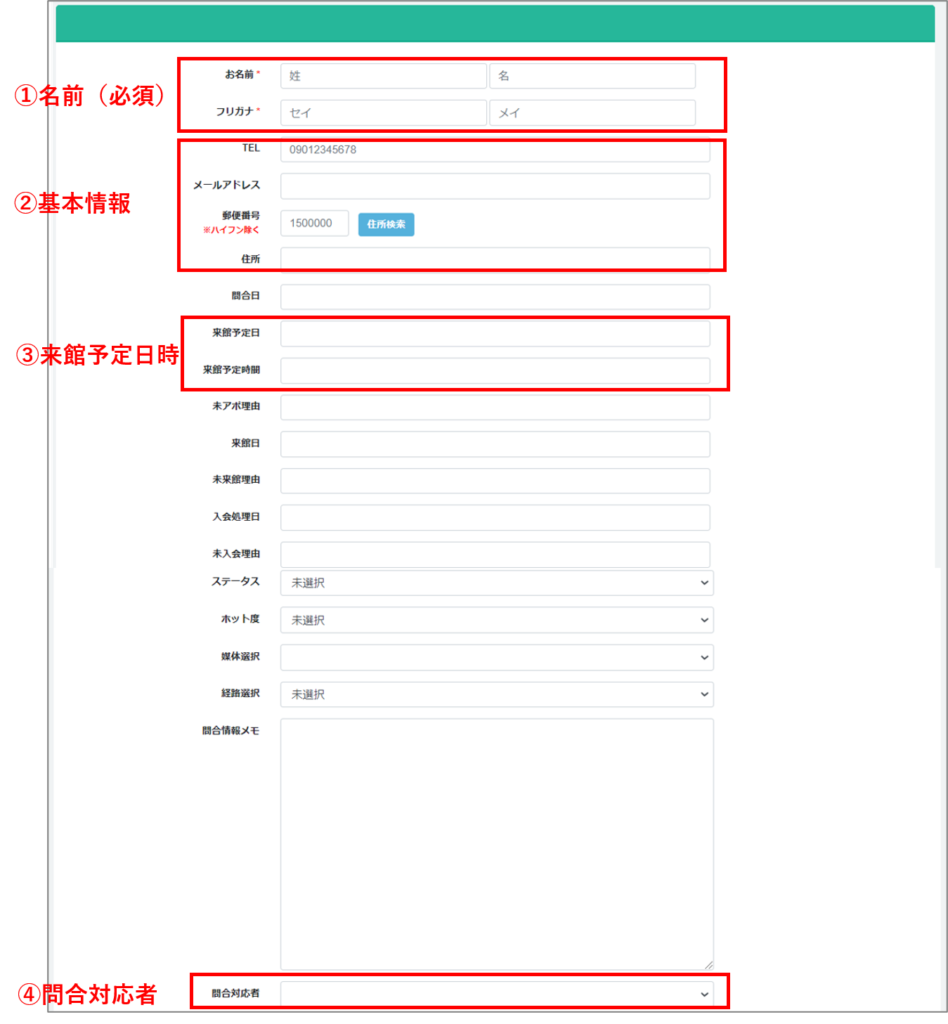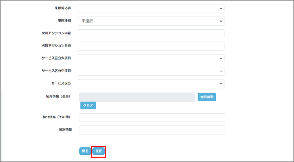 ②問合せ情報を入力し【保存】を押す