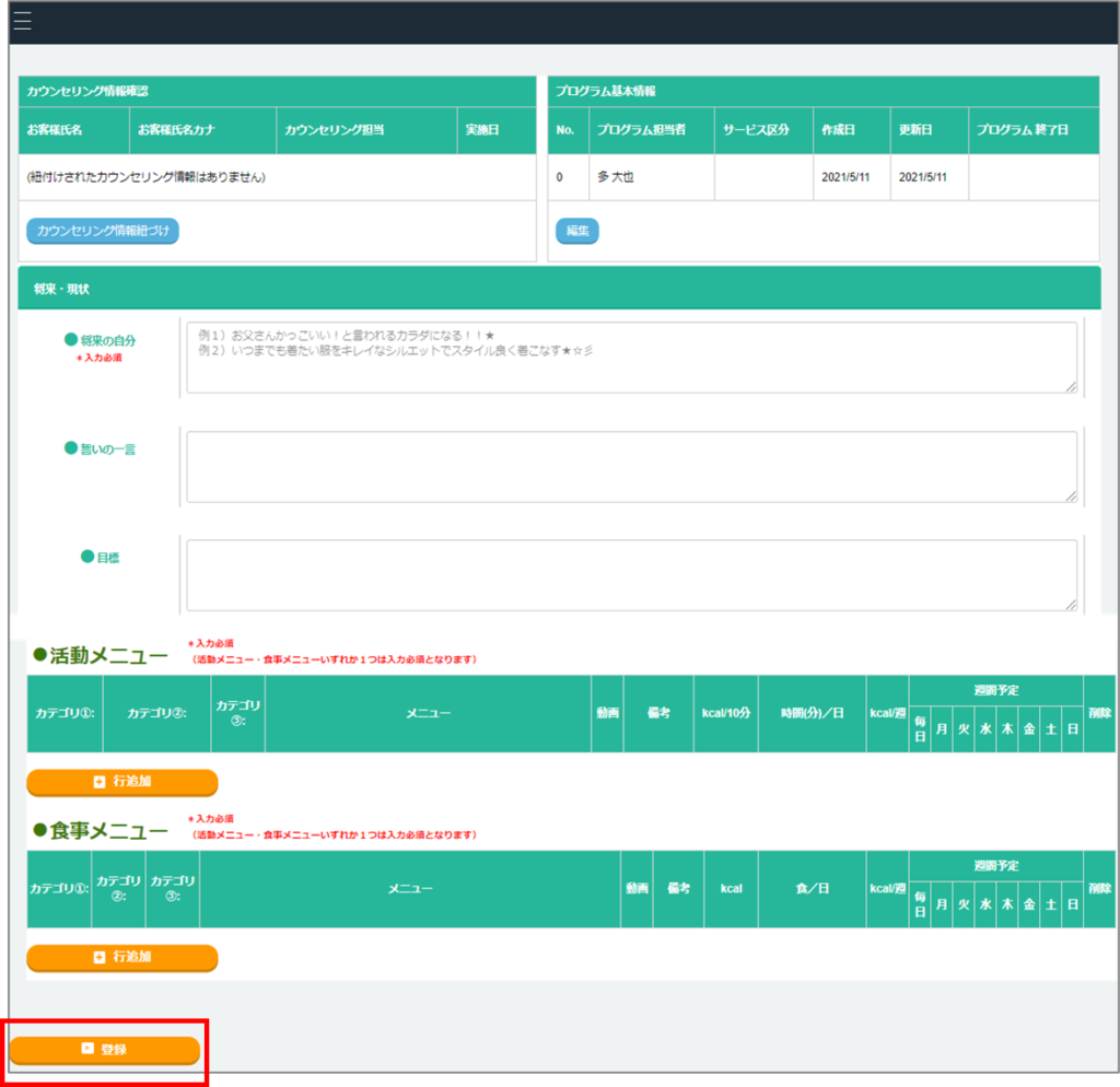 プログラム作成画面が表示されるので、必要事項を入力し〈登録〉を押す