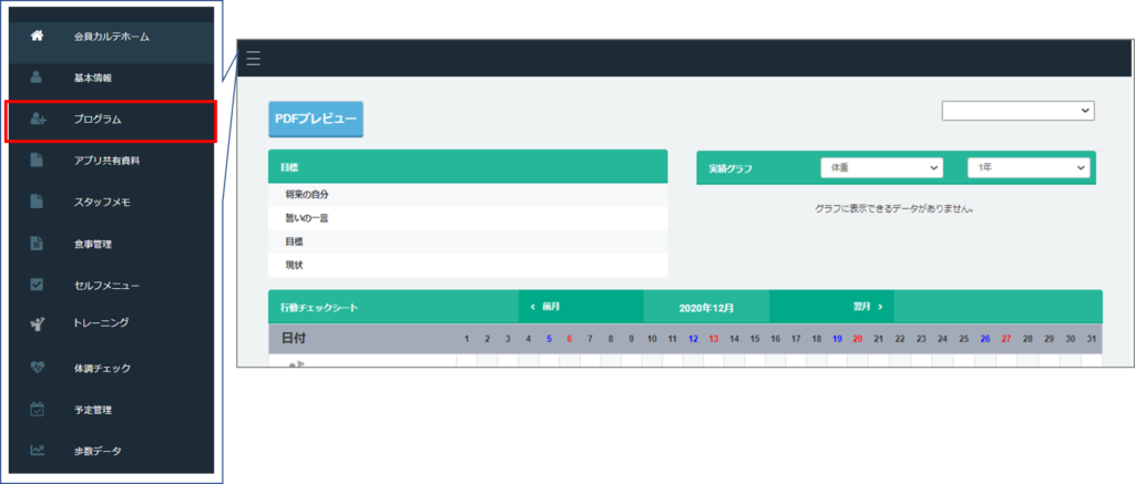 会員カルテホームで〈プログラム〉を選ぶ