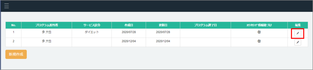 ②【入会前、見学や体験時に行ったカウンセリングで作成したプログラムを編集する場合】