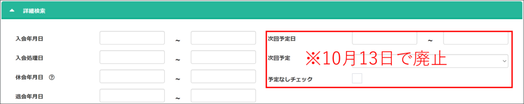 会員検索の詳細検索条件の一部が変更となります。