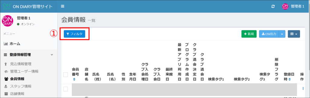 ON DIARY管理サイトにて、ON DIARYで管理している会員情報をCSVファイルに出力できるようになりました。