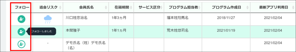 自分が特に活動をサポートしたい会員をフォロー追加することで自分だけのフォロー会員リストが作成できます。
