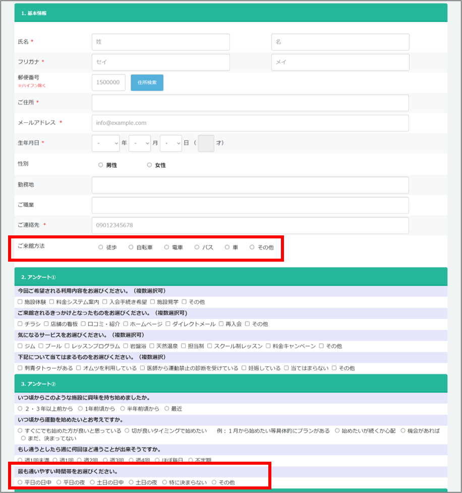 アンケートに「最も通いやすい時間帯をお選びください。」の項目が追加されました。