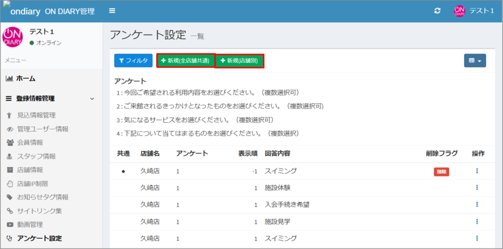 ※スタッフサイトでは、現状通り、店舗毎での追加のみとなります。