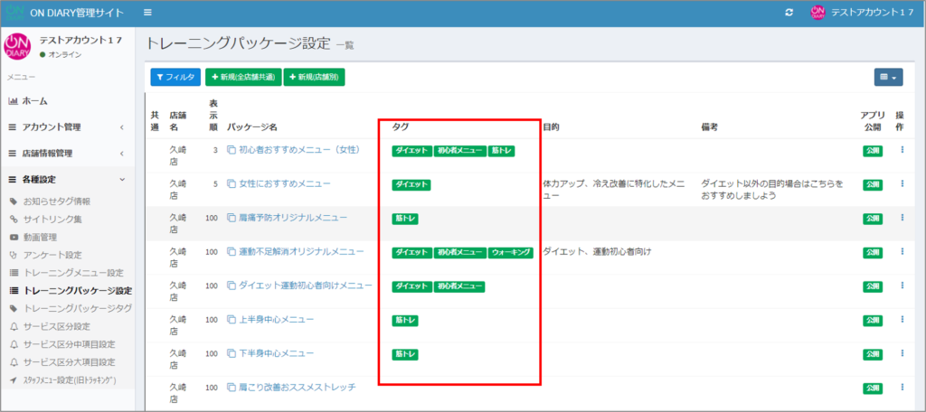 ▼ON DIARY管理サイトでのトレーニングパッケジタグ設定の詳細はこちら▼