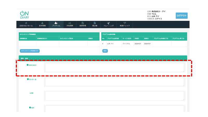 会員カルテからプログラムを作成する際の以下の項目が必須となりました。